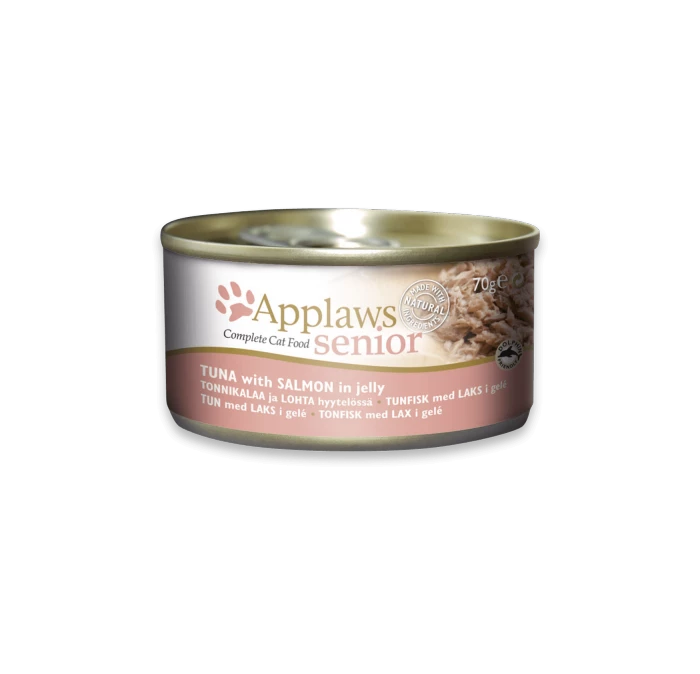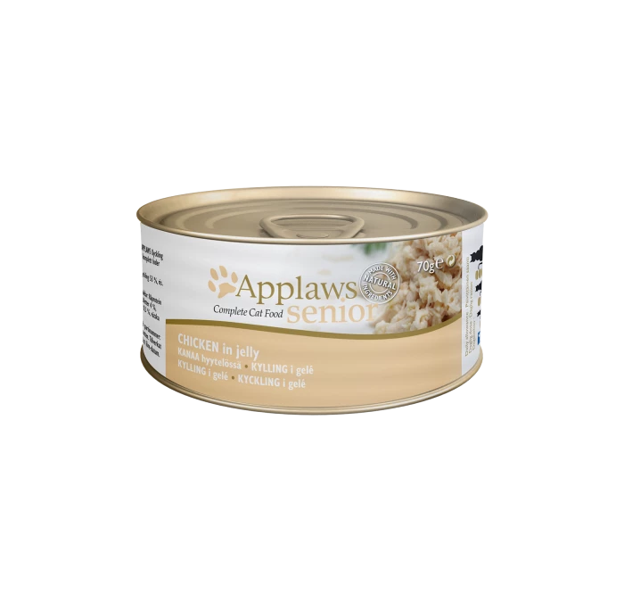 Applaws senior is een bijzonder hoogwaardig compleetvoer, dat speciaal op de behoeften van oudere katten is afgestemd. Met gebruik van uitsluitend hoogwaardige ingrediënten biedt Applaws senior uw kat een voeding, die bijzonder rijk is aan taurine en arginine. Twee voor katten essentiële aminozuren, die hoofdzakelijk in het beste stuk vlees voorkomen. Applaws gebruikt uitsluitend pure en natuurlijke ingrediënten van de beste kwaliteit. Het kippenvlees in het voer komt van scharrelkippen uit hormoon- en antibioticavrije fokkerijen en leveren uitstekende, magere eiwitten. De filets van de verwerkte vis stammen uit duurzame en diervriendelijke visvangst en leveren hoogwaardige eiwitten en omega-3- en omega-6-vetzuren. Iedere receptuur is consequent vrij van additieven. Applaws senior is ook ideaal voor katten met allergieën of intoleranties omdat er geen gluten of tarwe in het voer zitten. De gelei in het voer zorgt tevens voor de beste acceptatie – ook bij kieskeurige senioren.