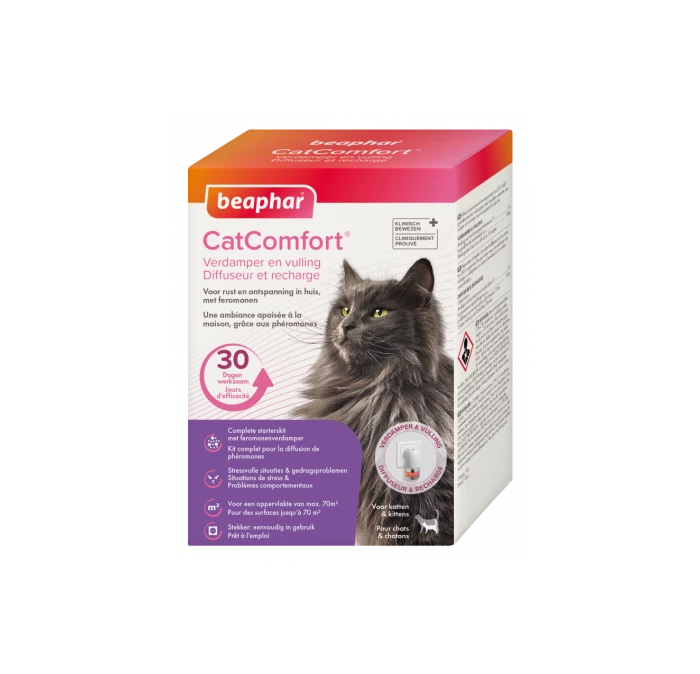 Beaphar CatComfort® is bijzonder geschikt bij veranderingen in de omgeving van een kat, zoals een verhuizing, nieuwe inrichting of zelfs het verplaatsen van meubels. Het gebruikte feromoon in Beaphar CatComfort® is een kopie van het kopjesferomoon van de kat. Dit feromoon geeft een geruststellend gevoel en laat katten weten wat een veilige plek is. Dit is prettig wanneer een kat in een nieuw huis komt. Zo kan hij sneller wennen aan zijn nieuwe omgeving.