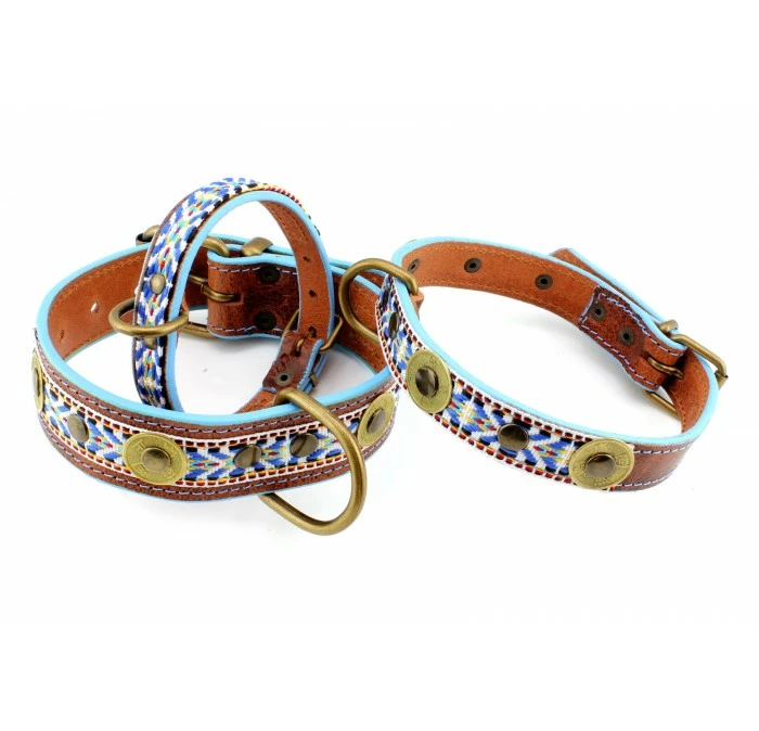Boiae betekent halsbanden in het Latijns. De Boiae halsbanden zijn modern, maar doen toch vintage aan door hun looks. De randen zijn voorzien van een laagje blauwe verf en verder is halsband afgewerkt met messingkleurige gesp en D-ring.