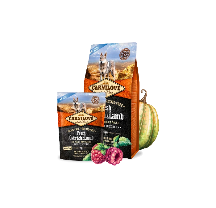 Geformuleerd met respect voor de wetten van de natuur en de speciale behoeften van uw kleine hond, biedt Carnilove Fresh Ostrich & Lamb uitgebalanceerde voeding rijk aan vers vlees gecombineerd met een verscheidenheid aan groenten, bessen en kruiden. Terugkeren naar een natuurlijk dieet zorgt voor een optimale opname van voedingsstoffen en een uitstekende spijsvertering, die beide helpen kleine honden in topconditie te houden.