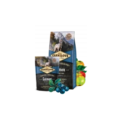 zalmmeel (25%), zalm zonder been (20%), gele erwten (20%), haringmeel (10%), kippenvet (geconserveerd met tocoferolen, 9%), kippenlever (3%), appels (3%) ), tapiocazetmeel (3%), zalmolie (3%), wortelen (1%), lijnzaad (1%), kikkererwten (1%), gehydrolyseerde schaaldieren (bron van glucosamine, 0,026%), kraakbeenextract ( een bron van chondroïtine, 0,016%), biergist (een bron van mannan-oligosacchariden, 0,015%), cichoreiwortel (een bron van fructo-oligosacchariden, 0,01%), yucca schidigera (0,01%), algen (0,01%), psyllium (0,01%), tijm (0,01%), rozemarijn (0,01%), orega – nee (0,01%), veenbessen (0,0008%), bosbessen (0,0008%), frambozen (0,0008%).