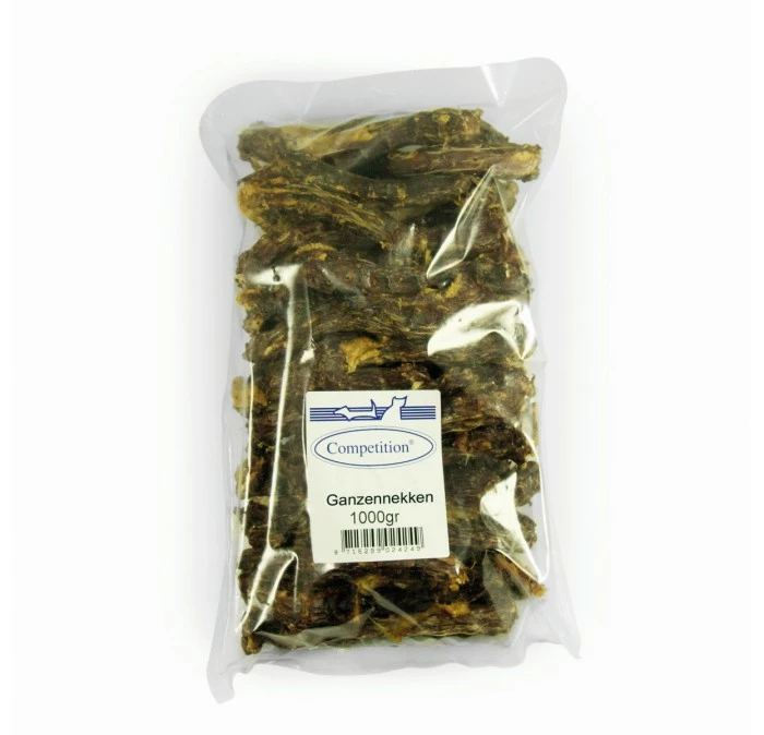 Deze ganzennekken van Competition zijn een gezonde snack voor de hond. Dit product bestaat uitsluitend uit ganzennekken en heeft een overheerlijke smaak. Door deze snacks te geven tijdens de training zal de hond zeer gemotiveerd zijn om te werken.