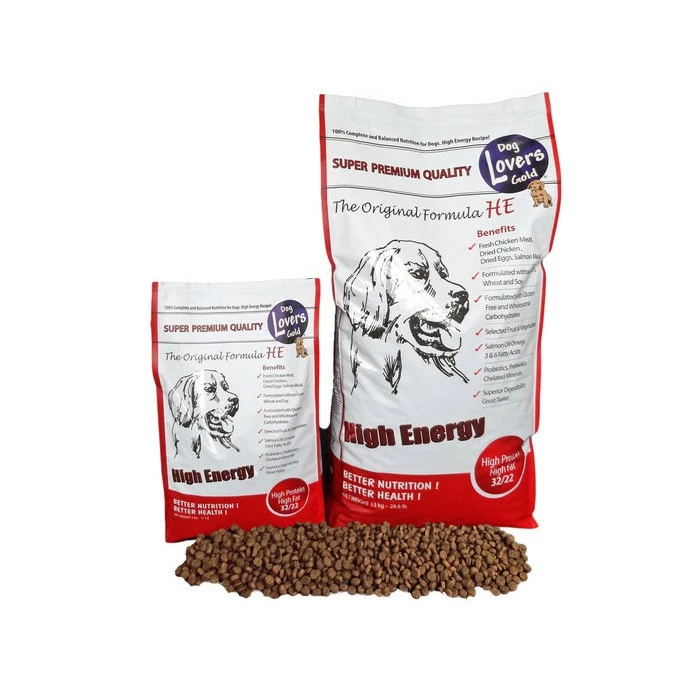 Dog Lovers Gold Original Formula HE is geschikt voor honden met behoefte aan een voeding met Hoge Energiewaarden.