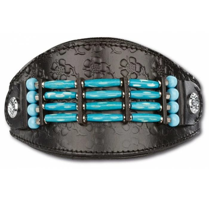 Deze prachtige gevoerde windhondenband met de blauwe kralen staat bij elke windhond fantastisch. Maat: 43 cm lang en 8 cm breed, geschikt voor honden met een nekmaat van 26 tot 34,8 cm.