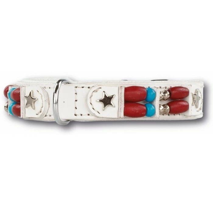 Een mooi klein, maar breder halsbandje met kralen voor de kleinste honden. Gemaakt van kalfsleer en gevoerd aan de binnenzijde.