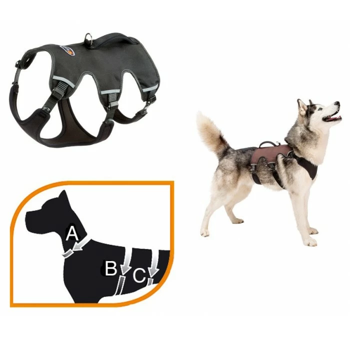 Ergonomisch gevormd, makkelijk aan te trekken en voorzien van stevig nylon wat gevoerd is voor extra comfort. Doordat het tuig voorzien is van een extra buikband achter de ribben is het geschikt voor honden die ontsnappingsgevoelig zijn. Denk hierbij aan honden die extreem vluchtgedrag vertonen in bepaalde situaties (onweer/vuurwerk). Maar is ook geschikt voor die hond die mee de bergen in gaat met de baas. Het Ergotrekking tuig is verkrijgbaar in 3 maten en 2 kleuren, ideaal voor honden van alle maten. De small is geschikt voor honden tot 20 kilo, de medium voor honden tot 30 kilo en de Large voor honden tot 40 kilo. Controleer ook onderstaande afmetingen met de maten van uw hond.