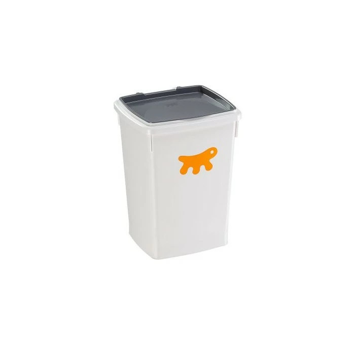 26 liter: 29,7 x 33 x 42,5 cm. Goed voor ca. 10 kilo voer.