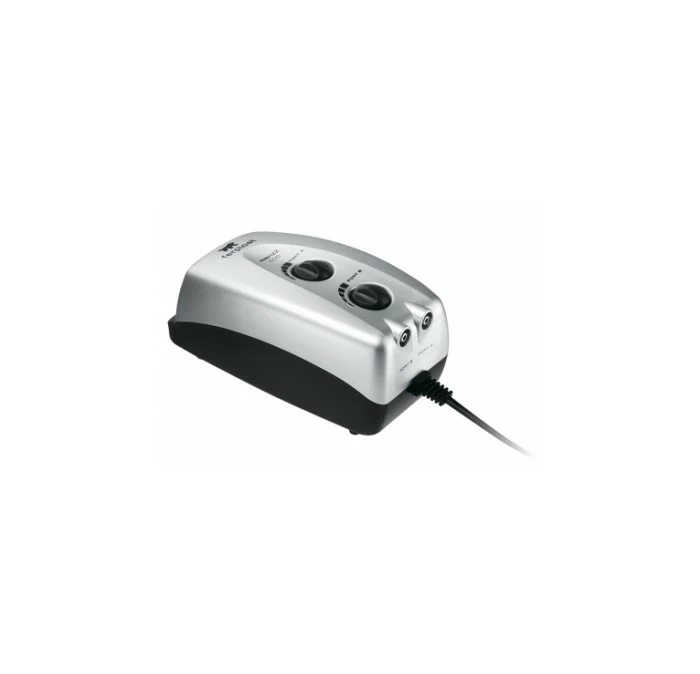 rubberen steunpootjes om trillingen te verminderen. Geruisloze ventilator. Uitgerust voor bevestigingen aan de aquariumwand. 2 uitlaten met afzonderlijk instelbaar vermogen. Geschikt voor aquariums met een inhoud van max. 300 liter.