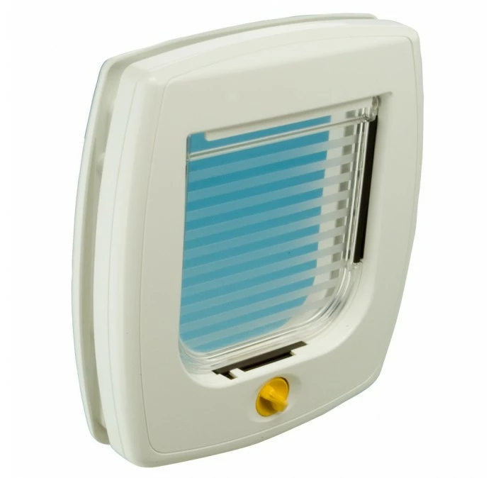 Geschikt voor dunne muren/deuren (5 cm) – Universeel toepasbaar: dankzij aanpasbare tunnel is de swing geschikt voor ieder materiaal: hout, metaal, glas, tussenmuren en vliegengaas.- 4-standenvergrendeling. – Zacht sluitende deur. Geschikt voor katten.
