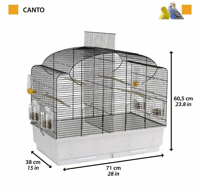 De Ferplast vogelkooi Canto is een praktische en mooie kooi. Geschikt voor tropische vogels, parkieten & kanarie’s. Deze kooi kan door middel van het tussenrooster gesplitst worden. Wordt geleverd met de afgebeelde accessoires.