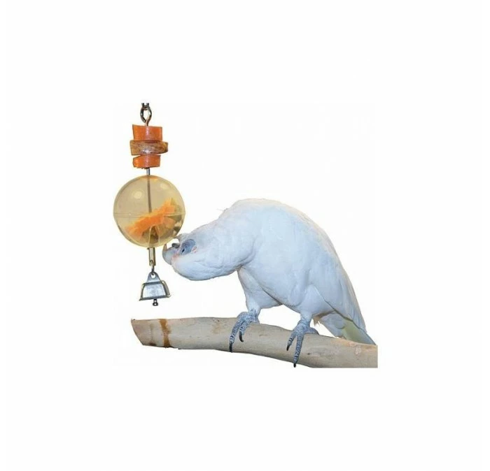 De bovenkant van de Foraging Sphere kan gebruikt worden om bijvoorbeeld fruit op te rijgen. De bal kan gevuld worden met lekkers. Inclusief belletje onderop.