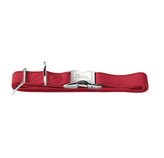 Mooie, maar simpele klikhalsband, voorzien van aluminium kliksluiting. Degelijkheid & kwaliteit staan voorop bij Hunter en daar is deze halsband weer een voorbeeld van. Gemaakt van nubuck leer, een leer soort dat zodanig bewerkt is dat het een zachte fluwelige uitstraling heeft.