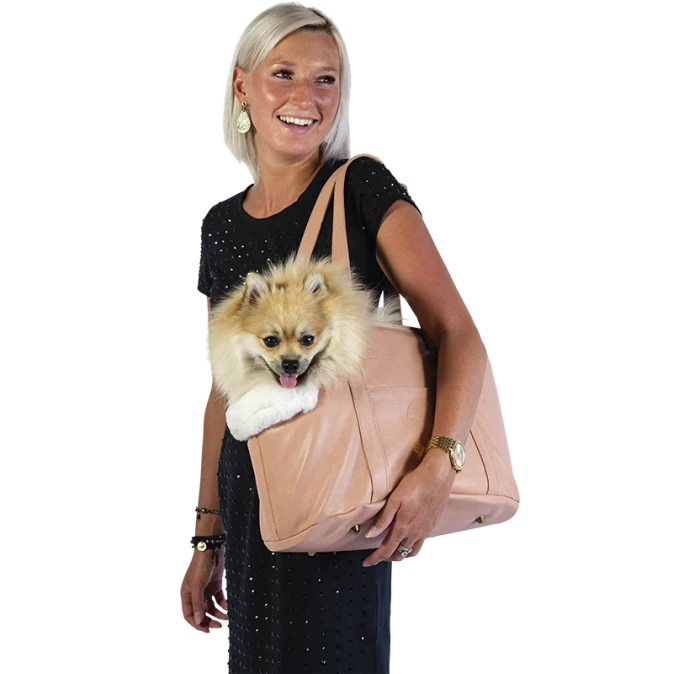 Met deze glamoureuze lederen handtas neem je je kleine hond of kat in stijl mee op stap! De zachte, warme voering met drukknopen is gemakkelijk verwijderbaar, waardoor je deze tas in alle seizoenen kan gebruiken.