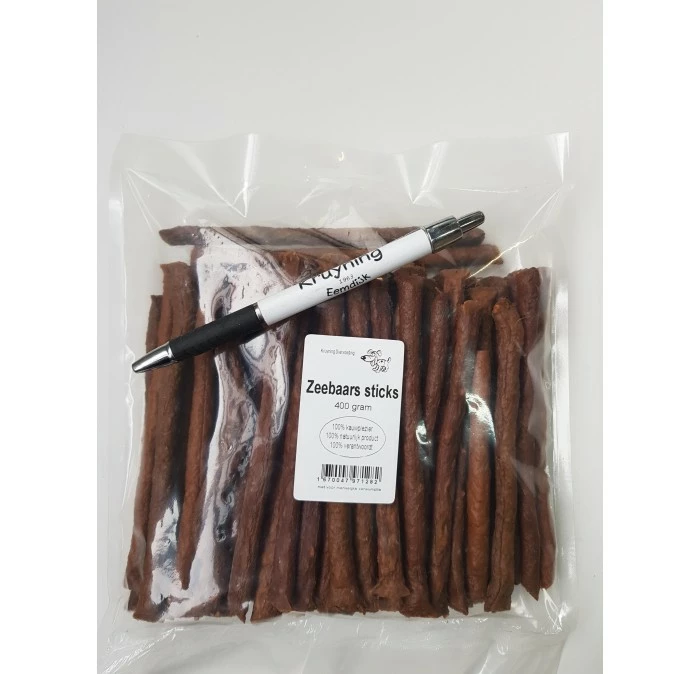 Kruyning zeebaars sticks Hondensnacks is een heerlijke snack met zeebaars en is geschikt voor iedere hond. Deze snacks zijn een niet te versmaden hapje voor uw hond. Ze bevatten gezonde voedingsstoffen en komen in handige sticks. Ideaal als tussendoortje of als beloning na een goede prestatie dus.