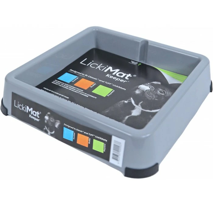 De Licki Mat keeper is een ideale houder om Licki Mat voedermat (de kleine maat van 25 cm) in te plaatsen. Daarnaast kan dit product uiteraard ook apart als voederbak fungeren. Deze keeper zorgt ervoor dat uw hond minder rommel maakt tijdens het eten dankzij zijn omstaande rand van 5 cm . Dankzij zijn stevige antislip bodem voorkomt dit product ook dat de Licki Mat over de grond gaat verplaatsen. Het voordeel van deze keeper is ook dat u meer voer tegelijk kunt aanbieden, dankzij de stevige omranding kan uw hond ook niet meer aan de Licki Mat kauwen, waardoor deze niet beschadigt. Deze keeper kan in de vaatwasser en wordt geleverd in de afmeting 25 x 25 x 5 cm en is gemaakt van gerecycled TPR + PP rubber.