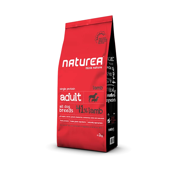De Naturals Adult met lam van Naturea is een volledig droogvoer voor honden van alle rassen dat voor wel 41% uit verse lam bestaat. De ingrediënten worden nooit ingevroren, waardoor voedingsstoffen optimaal worden behouden. Dit voer bevat daarom alle voedingsstoffen die een hond nodig heeft voor een goede gezondheid. Het voer is vrij van mais, tarwe, soja en gluten en bevat uitsluitend ingrediënten van de hoogste kwaliteit, waardoor een heerlijke smaak gegarandeerd is. Dit voer is tevens vrij van conserveermiddelen en kunstmatige smaakstoffen.