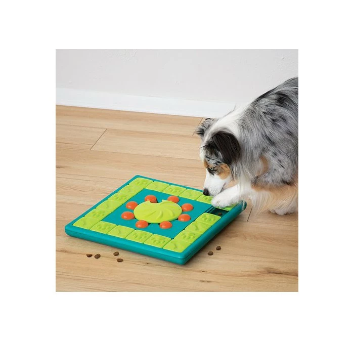 Met 28 verborgen snoepcompartimenten is de Nina Ottosson Dog MultiPuzzle onze meest uitdagende puzzel tot nu toe! Om probleemoplossend gedrag te bevorderen, moeten honden schuifjes verplaatsen en glijdende en roterende acties combineren om verborgen lekkernijen te ontdekken.