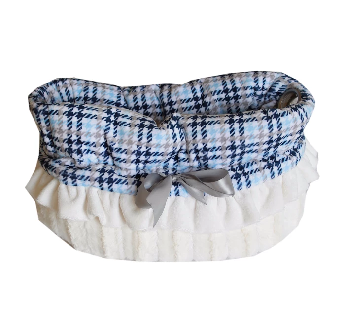 Rol de zijkanten omlaag, verwijder het hengsel en plaats het kussen voor een zachte slaapmand.