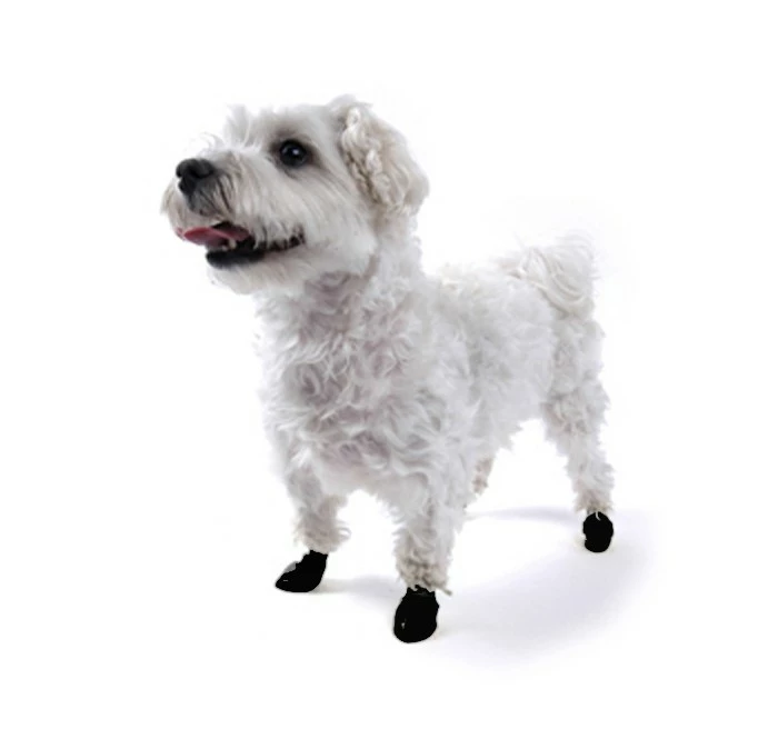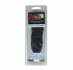 Pawz rubberen hondenschoenen. Deze hondenschoenen zijn een uitkomst voor honden die tijdelijk iets om hun voet moeten omdat de voet bv. niet nat mag worden, makkelijk om te doen voor de wandeling buiten in de nattigheid of sneeuw. Denk hierbij bv aan de langharige honden met sneeuwklompjes tussen de tenen.