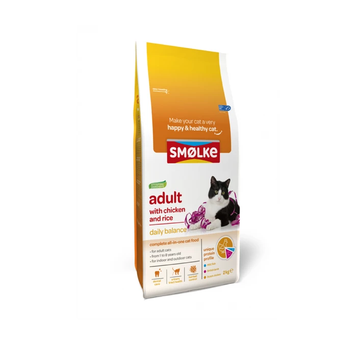 Smølke Adult with Chicken and Rice is een compleet Alles-in-één kattenvoer met natuurlijke ingrediënten wat iedere dag weer zorgt voor een blije en tevreden kat.