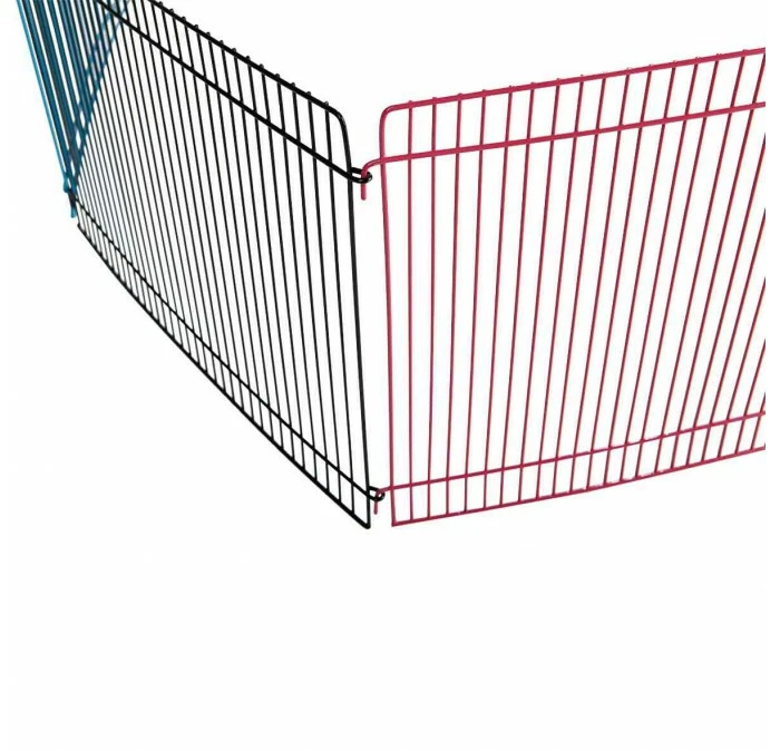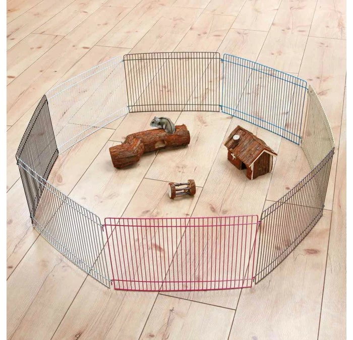 De ren bestaat uit 8 panelen en kan in verschillende vormen worden opgebouwd. Geef je huisdier ook een schuilplaats en speelgoed om verveling en ontsnappen te voorkomen. Plaats de ren op de grond en gebruik hem alleen onder toezicht. Geschikt voor hamsters, muizen en Gerbils. Tevens is de ren plaatsbesparend en opvouwbaar.