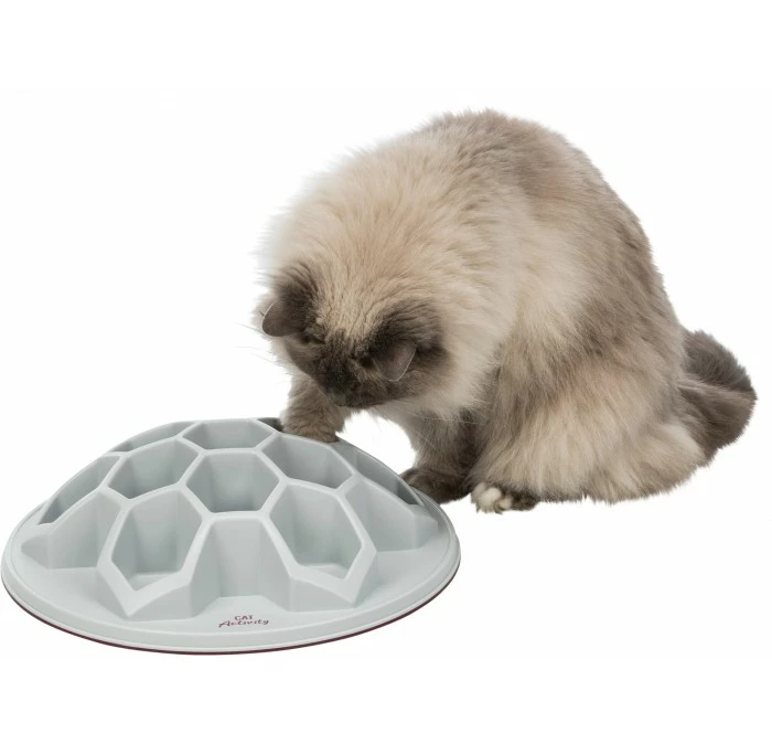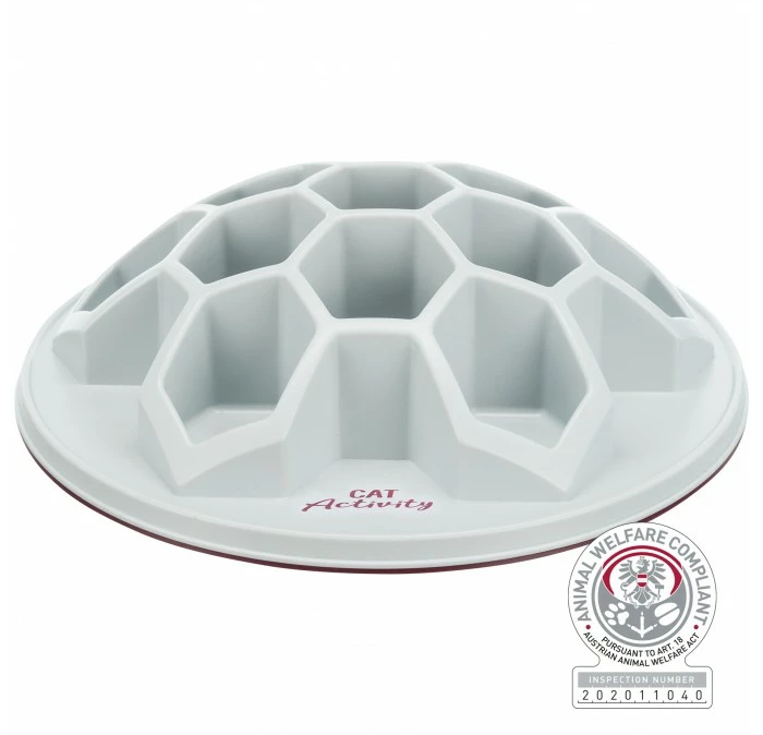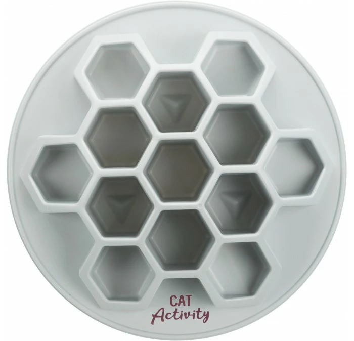 Een spel met honingraatachtige kommetjes, perfect voor het verstrekken van het dagelijks droogvoer.